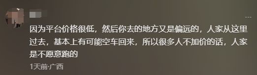 也有网友认为,此事不是司机的问题,而是平台的问题。该网友称:“平台单程几十公里才给几十块,而且去那个地方很少有回程,司机不接就没有生意,接了就亏本。”