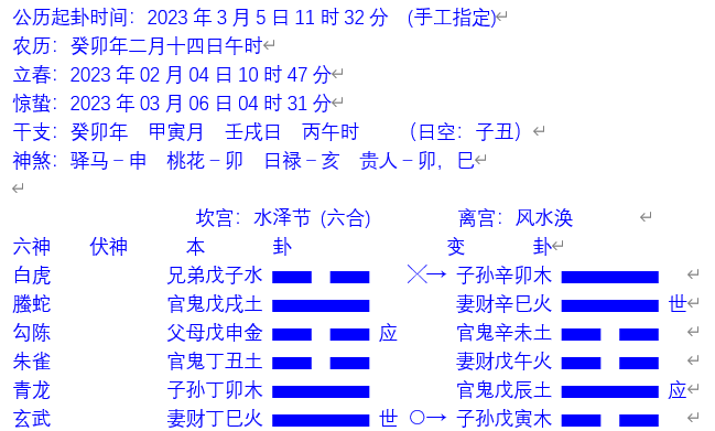第十二块地,于癸卯年甲寅月壬戌日丙午时问得水泽节之风水涣。