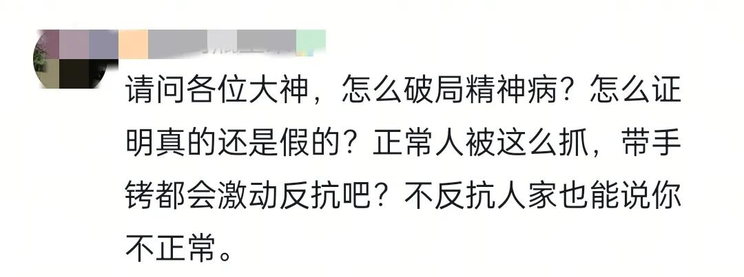 拍视频的王先生(化名)事后回忆:"我上去问为啥铐人,他们只说'家属报的警',再问就不吭声了。"这条1分23秒的视频,24小时内播放量破亿。