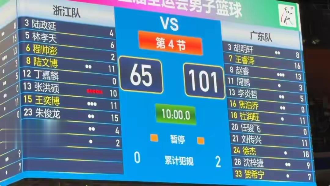 2025年11月12日晚,广东男篮以101:65战胜了浙江省男篮队,时隔12年后再夺冠。