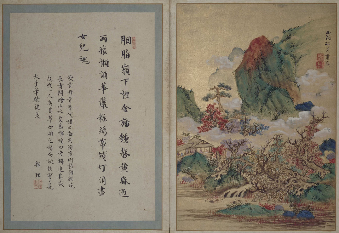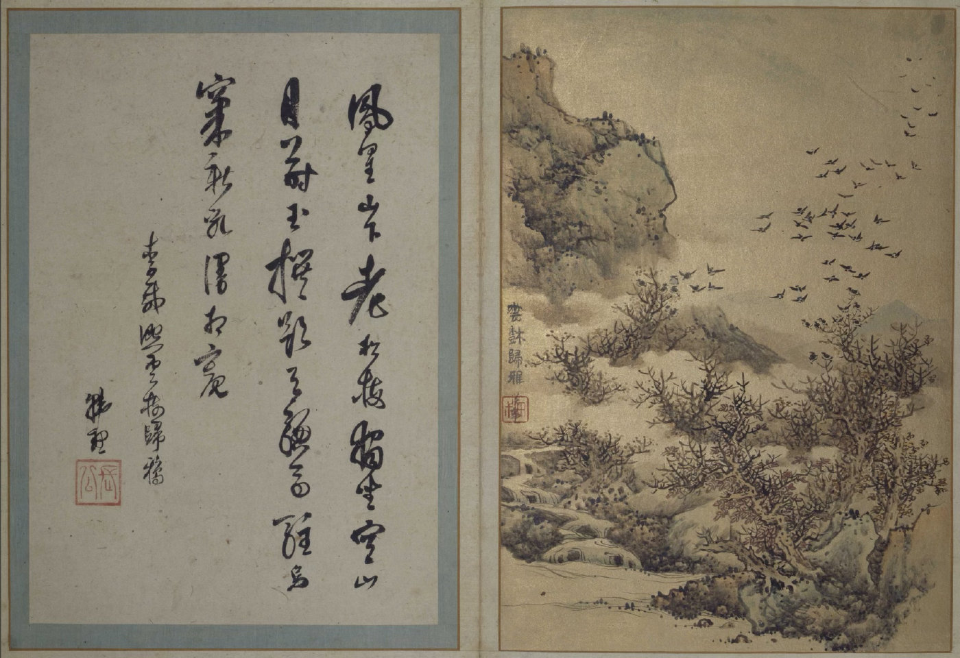 当蓝瑛在69岁那年铺开纸,《澄观图册》的十二开山水便成了他与天地对话的媒介。从春山桃花到冬岭积雪,从渔翁独钓到高士寻幽,这位明代画家把"澄怀观道"的哲思,全揉进了笔墨里——陡峭的山藏着险中的平,归巢的鸦带着黄昏的静,没骨法点染的花透着自然的活。十二开册页,像十二扇窗,推开每一扇,都能看见他对"平和无我"的追寻.