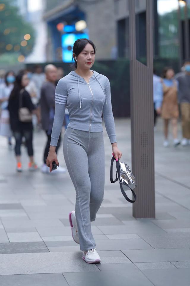 穿运动衣搭配运动裤的时尚运动型小姐姐