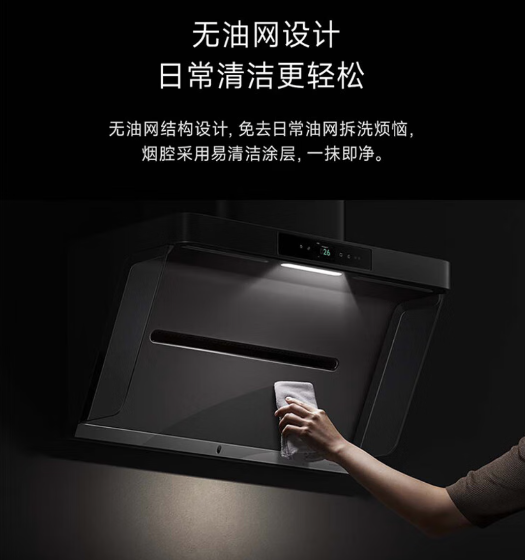 另外一个特别容易被忽略,但父母用久了会很在意的点,是清洁。传统烟机用一段时间后,油网和内部结构很容易积油,不仅吸力下降,清理一次也费时费力。这台米家净烟机P1采用了无油网设计,油污不容易附着,日常基本一擦就能干净,也不需要拆洗。对不愿意折腾清洁、又不想额外花钱请人维护的父母来说,这种越用越省心的状态,才是真正拉开体验差距的地方