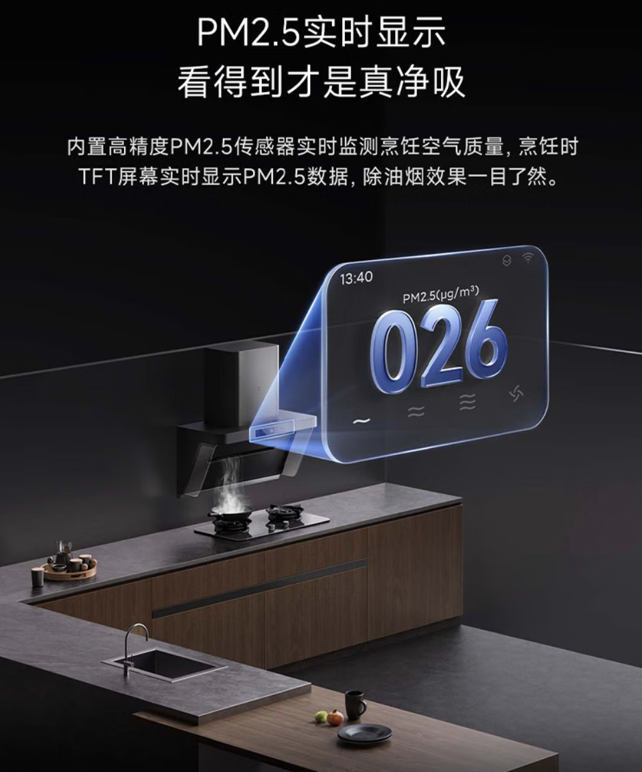 真正适合父母用的烟机,核心其实就三件事:烟能不能吸干净,人站在灶前舒不舒服,用久了会不会越来越麻烦。比如下面推荐的这款米家净烟机P1在这几件事上的取向,非常明显地偏向了长期、高频使用的家庭场景。做饭的时候,它不仅是把看得见的油烟吸走,还会把看不见的油烟味和PM2.5等有害物质一起处理掉,对经常下厨、呼吸道又比较敏感的中老年人来说,这种差别是能实实在在感觉到的,尤其是过年这种连续高油烟烹饪的场景,呛、熏的情况会明显少很多。
