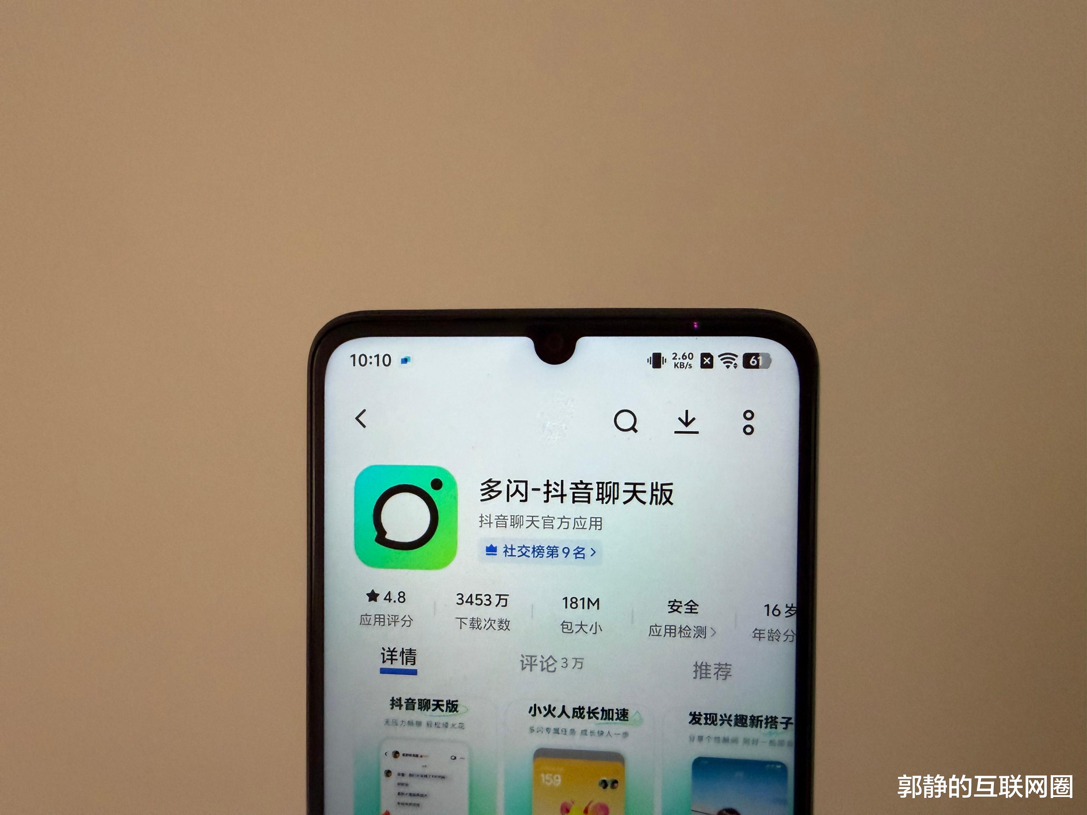 据郭静的互联网圈观察,虽然“多闪”App在App Store上排名比较靠前,但是在安卓端,其表现不一,甚至有的应用商店里都搜不到“多闪”,比如豌豆荚、OPPO应用商店、百度应用商店,其下载量最高的应用商店是华为应用市场,累计下载量为4亿次,在第三方应用商店中,下载量都不高。不知道后续抖音会不会在安卓端也对“多闪”发力,让它的下载量冲一冲。