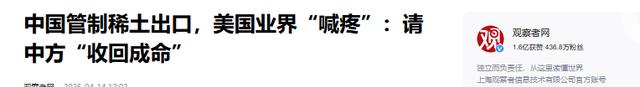 观察者网2025-04-14 12:02 中国管制稀土出口,美国业界“喊疼”:请中方“收回成命”