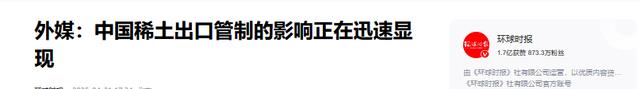 环球时报2025-04-21 17:34北京 外媒:中国稀土出口管制的影响正在迅速显现