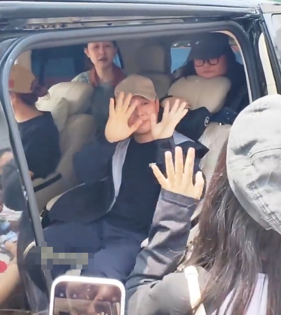 在讲完话上车准备离开的时候,他的手就没有停下来过,一直在和粉丝们挥手。