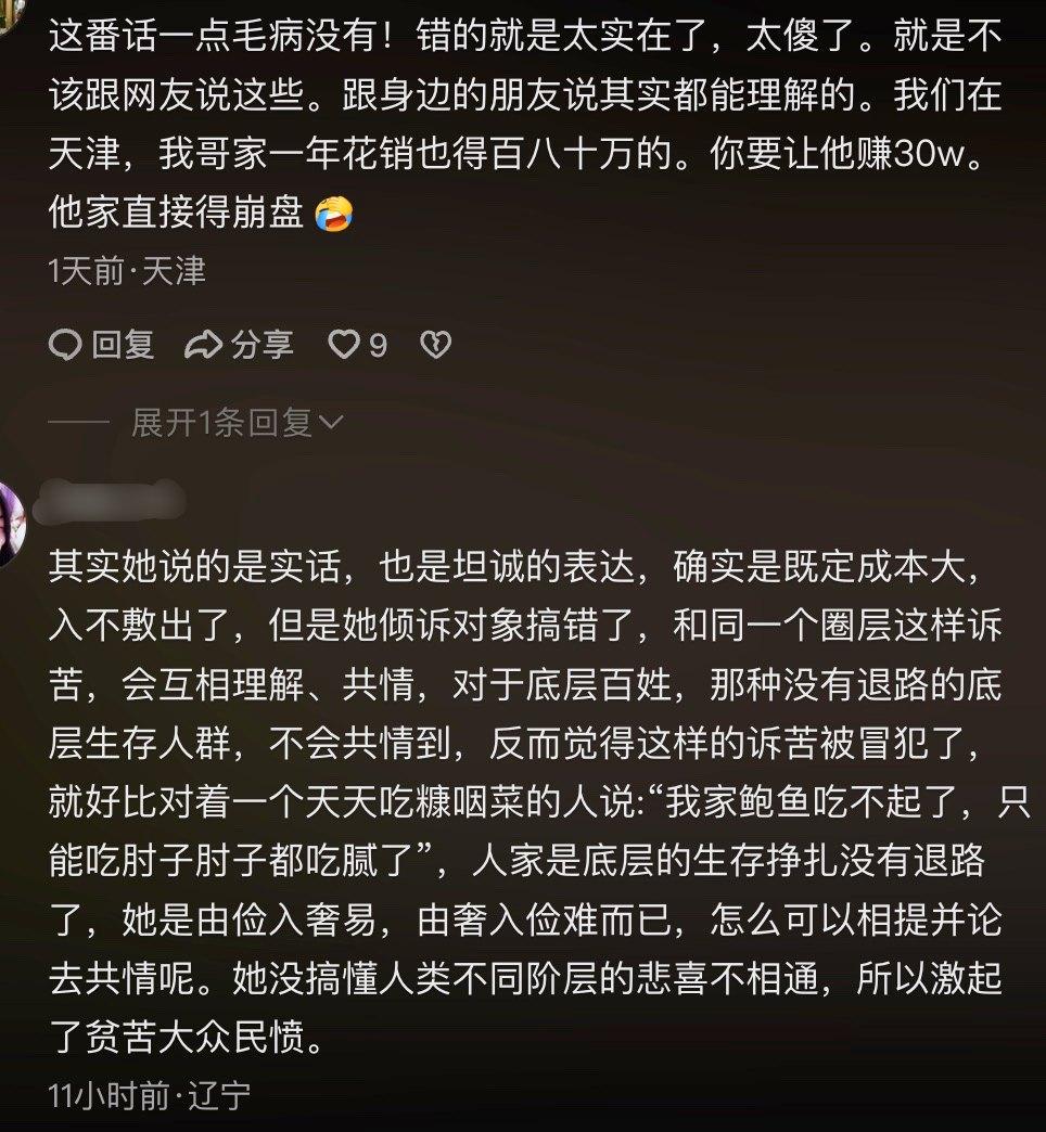 完整版视频一曝光,评论区瞬间变了天。短短两天时间,就攒下了两万多条评论,没有了之前的戾气,全是理解和共情,彻底实现了舆论倒戈。有网友直言:“这根本不是哭穷,是实话实说,只是不该在网上掏心窝子,毕竟人和人的处境不一样,你的烦恼,在别人眼里可能就是贪心。”
