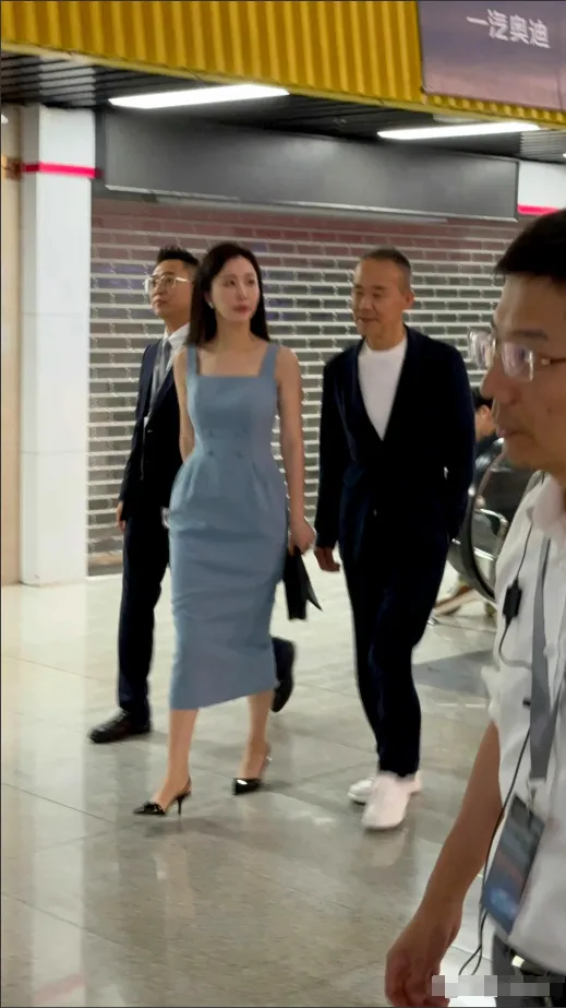 王石、田朴珺夫妇参加车展,田朴珺束身长裙尽显身材,王石似小跟班