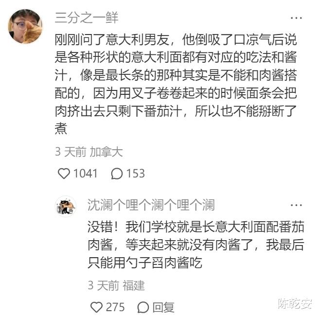 有人就去问了她的意大利男友,对方一本正经地说,每种意大利面都有对应的酱汁和吃法。