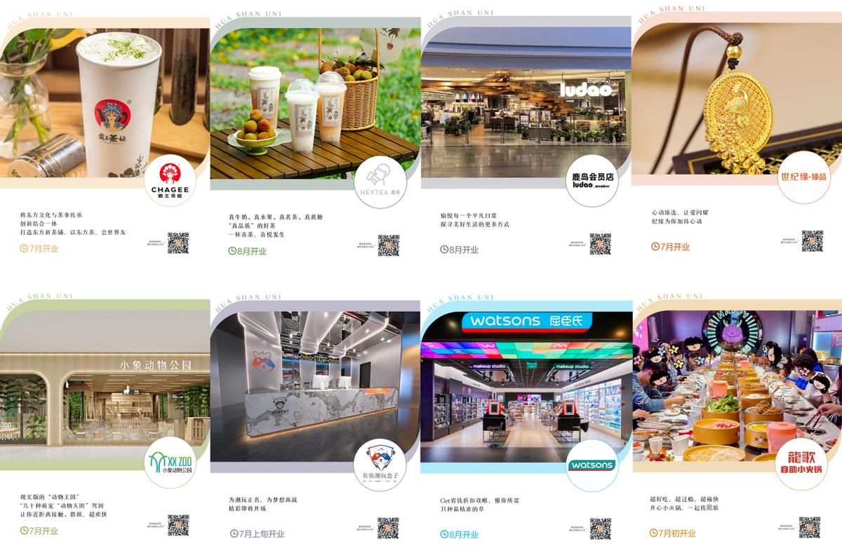 进入暑期,面对同业项目白热化竞争、品牌观望投资保守等诸多困难,华山环宇城经营中心商管团队始终坚定信念,迎难而上,凭借自身平台优势,及对外部时机的把握,积极布局商业矩阵,引进多家品质品牌,东方茶饮代表品牌【霸王茶姬】、新茶饮行业的开创者【喜茶】,品牌济南首店【小象动物园】,探寻美好生活方式的【鹿岛会员店】,实力品牌【屈臣氏】等二十余家品牌,不断刷新项目新体验。
