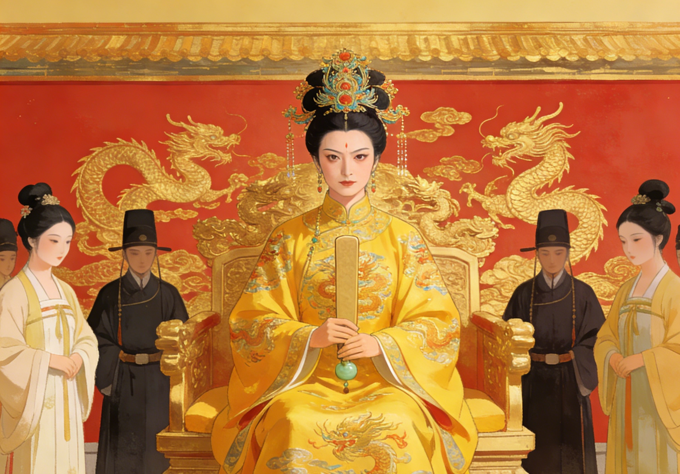 第四个阶段就是正式登基称帝,她在清除完政治上的阻碍、建立好外界舆论支持之后,更改国家名号、坐上皇帝之位,完成了从皇后到皇帝的最后一步转变。这种按照顺序慢慢推进的方式,把政治上的反对力量降到了最低,她获取权力的方式符合当时的政治规则,并不是依靠暴力抢夺权力,因此更容易被统治阶层的人接受和认可。