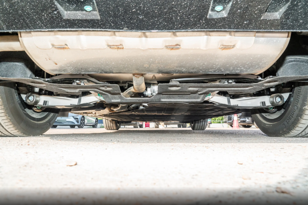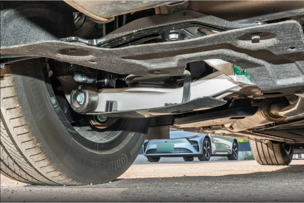 底盘悬架方面,升级后的飞鱼底盘2.0确实带来了越级体验。前双叉臂+五连杆悬架结构,再加上全铝合金底盘,不仅减轻了车身重量,还提升了操控性和舒适性。高配车型配备的 IAS 智能空气悬架和 CDC 电磁减振系统,更是比肩百万级豪车的配置。CDC 电磁减振系统每秒能进行多次阻尼调节,能根据路面情况实时调整,过减速带或者颠簸路面时,车身几乎没有多余的弹跳,震动过滤得很彻底,坐在车里感觉很平稳。