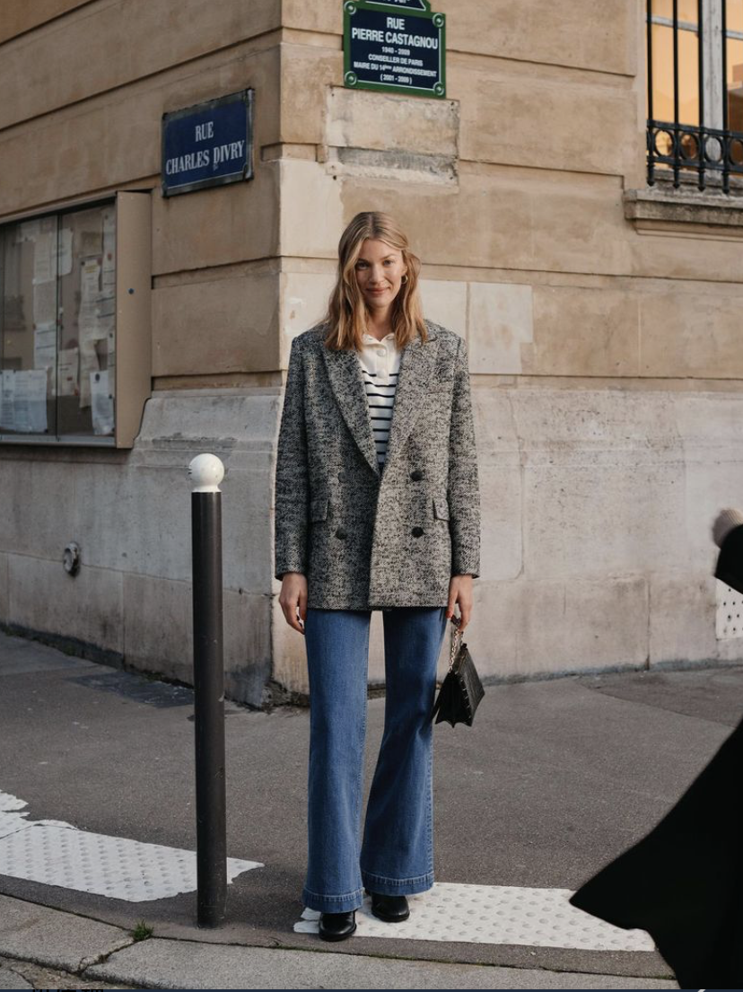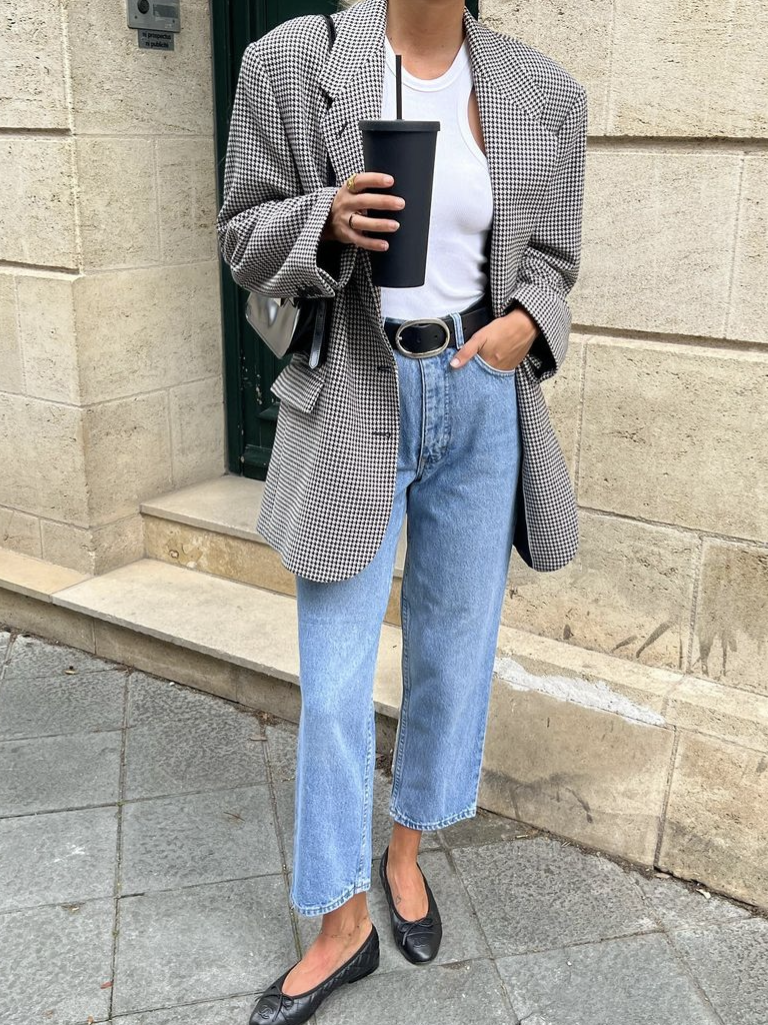 格纹西装与牛仔裤的组合,