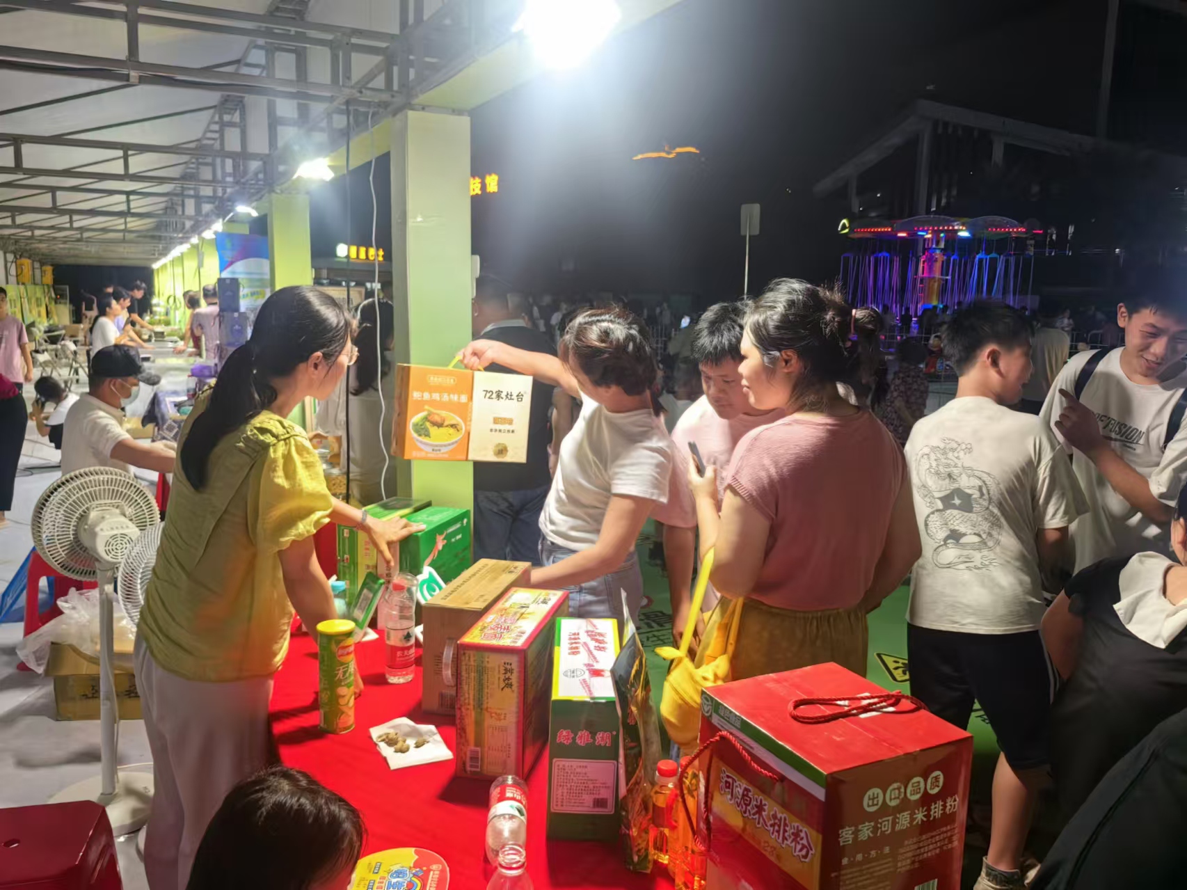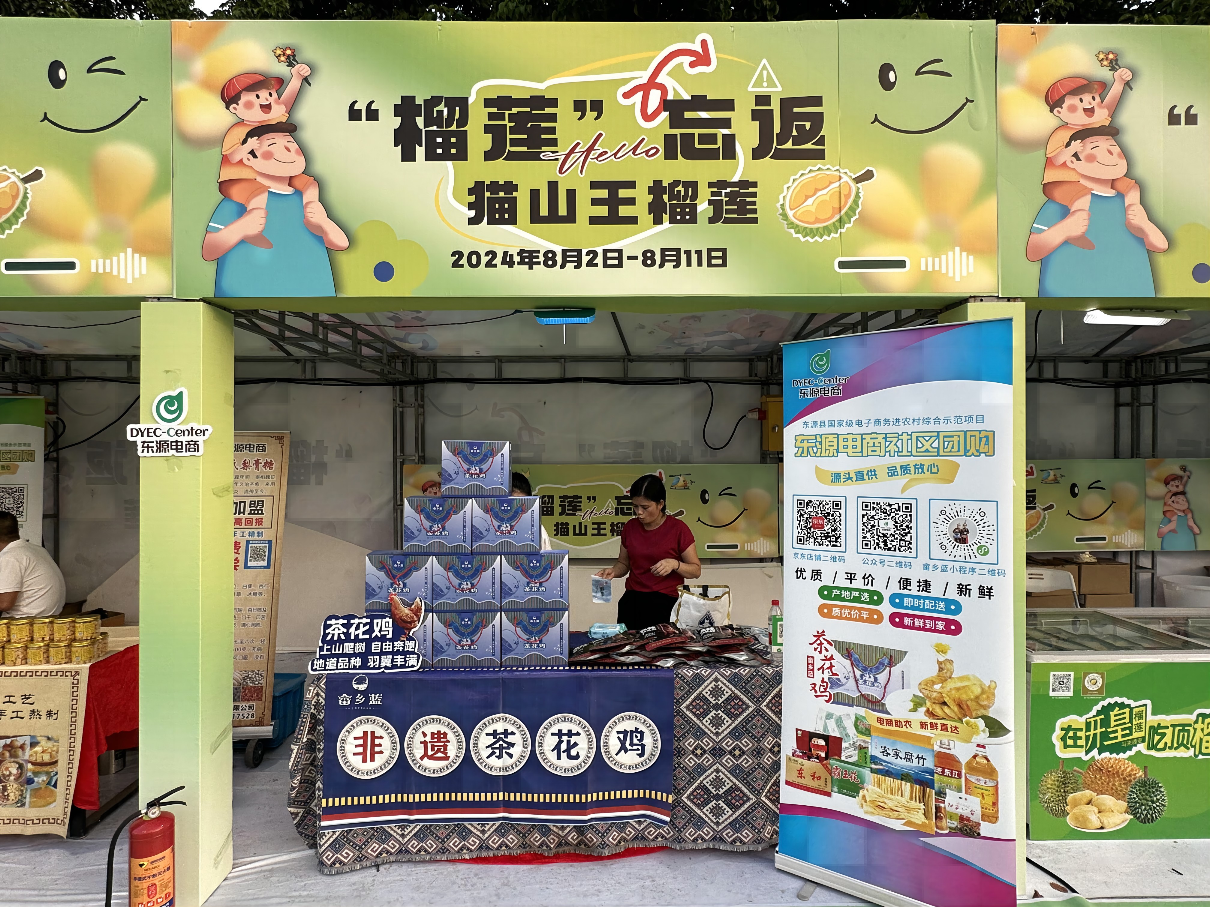 东源电商将深受大家喜爱的东源农特产品展示在嘉年华活动上:有非遗茶花鸡、廖氏梨膏糖、霸王花和绿雅湖米粉系列和东和面,青草塘,佗王花生油等多种产品,现场制作的梨膏糖被抢售一空,茶花鸡和霸王花、绿雅湖米粉系列,东和面产品热销。十个商家近几日的累计销售额近10万。