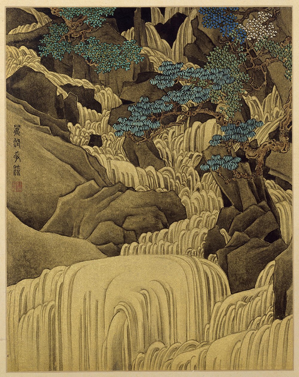 万壑争流则选取了自然景色的一个局部,描绘了树下葱郁的深山幽谷和奔流急湍的山泉,展现出山水之间的生机与活力,以及大自然的雄浑力量。