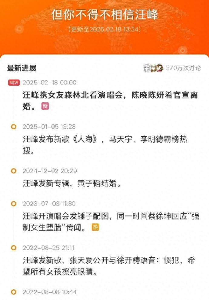 这些年来,每次汪峰有重要活动的时候总会被别的新闻抢了风头,这次倒好,他只是去看个演唱会都能赶上陈晓陈妍希宣布离婚的热搜。