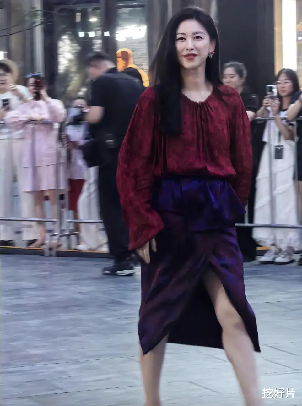和科技美的美人不同,董洁是自然老去的美,她的脸上有了一点细微的皱纹,但是并不影响整体的效果。