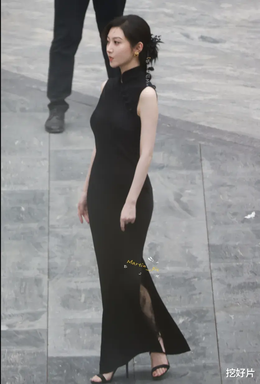 走上红毯,景甜永远是“人间富贵花”的感觉,一身黑色的旗袍,衬托得她整个人都是玲珑有致的。