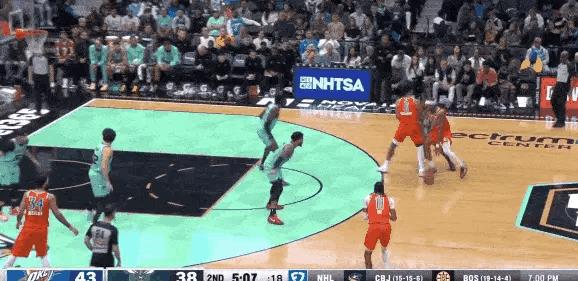 第三节,杰威强攻2 1后,雷霆队以68-51领先,杰威队以70-53领先,哈尔滕斯泰在扣篮后以72-59领先,杰弗里斯命中3分,黄蜂队以64-78领先,亚历山大队以2-2领先 1分后,雷霆以88-68领先,布里奇斯以90-74领先。
