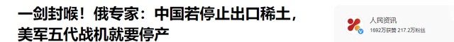 人民资讯-一剑封喉!俄专家:中国若停止出口稀土,美军五代战机就要停产
