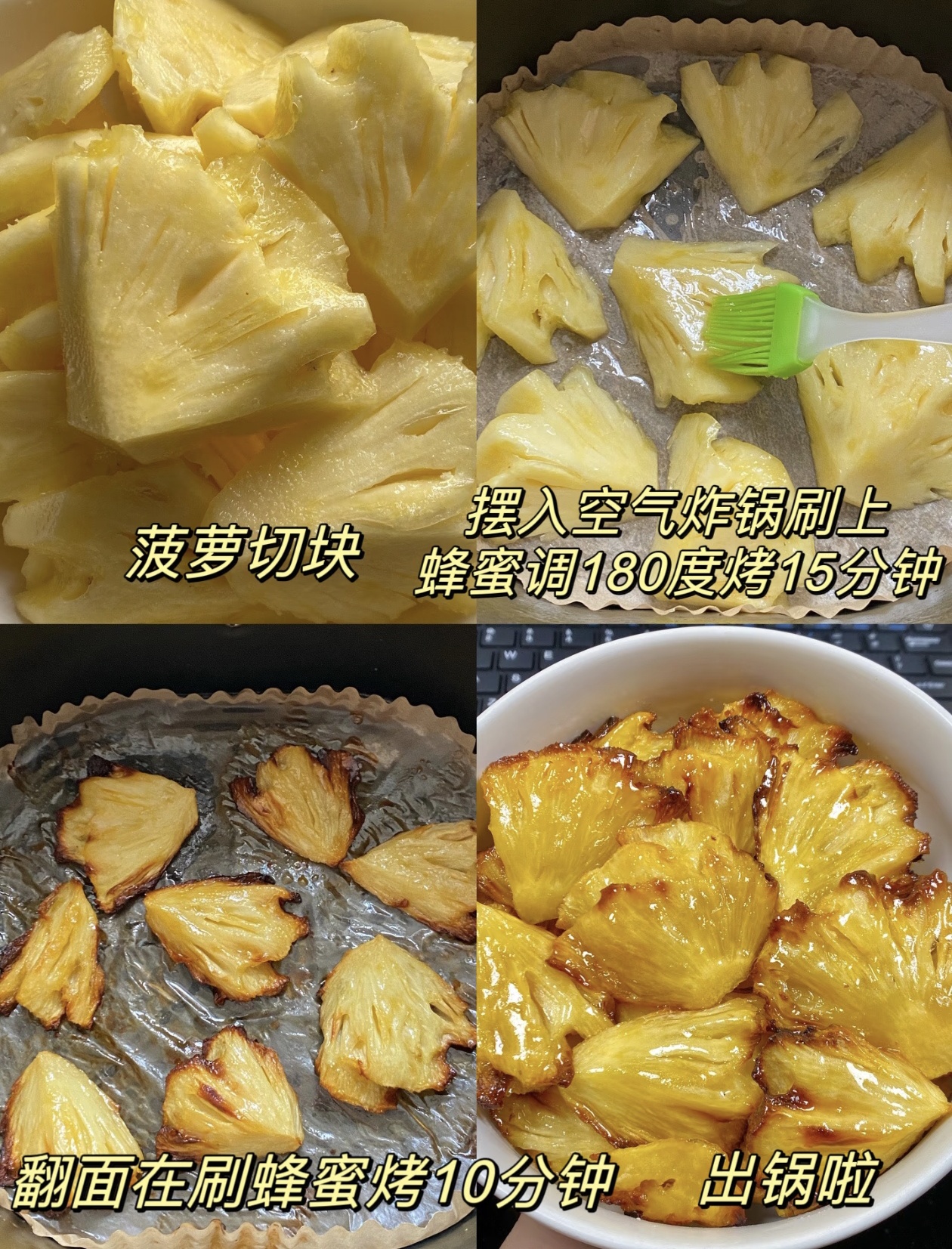 春天是菠萝大量上市的季节,清甜多汁的果肉带着阳光的气息,是餐桌上最应季的美味。不过很多人吃菠萝时总会被酸涩感劝退,其实只要换一种做法,就能让它变得香糯又甜蜜。今天要分享的这道蜜汁烤菠萝,用空气炸锅就能轻松完成,烤过的菠萝褪去了生涩,外皮焦脆带着蜜香,内里软糯多汁,不管是当饭后甜点还是追剧小零食,都让人一口就爱上。