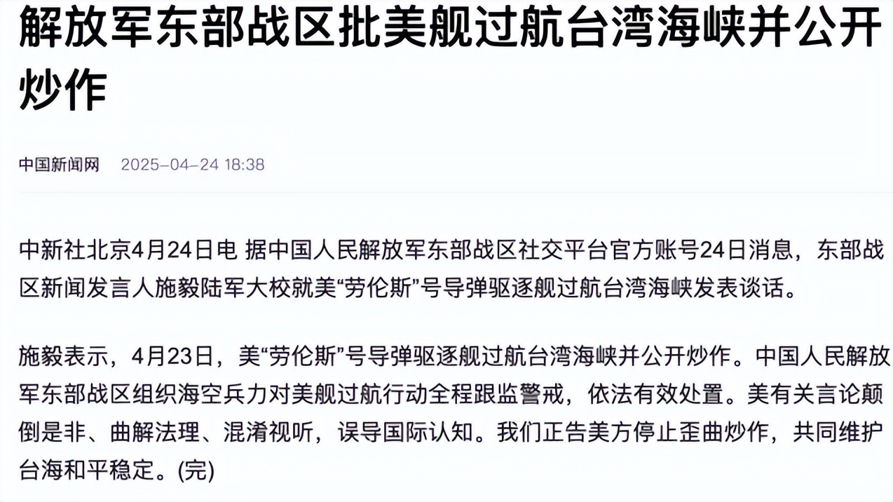 东部战区发言人在讲话时也明确说了:我们正告美国停止歪曲炒作,不要再破坏台海局势。