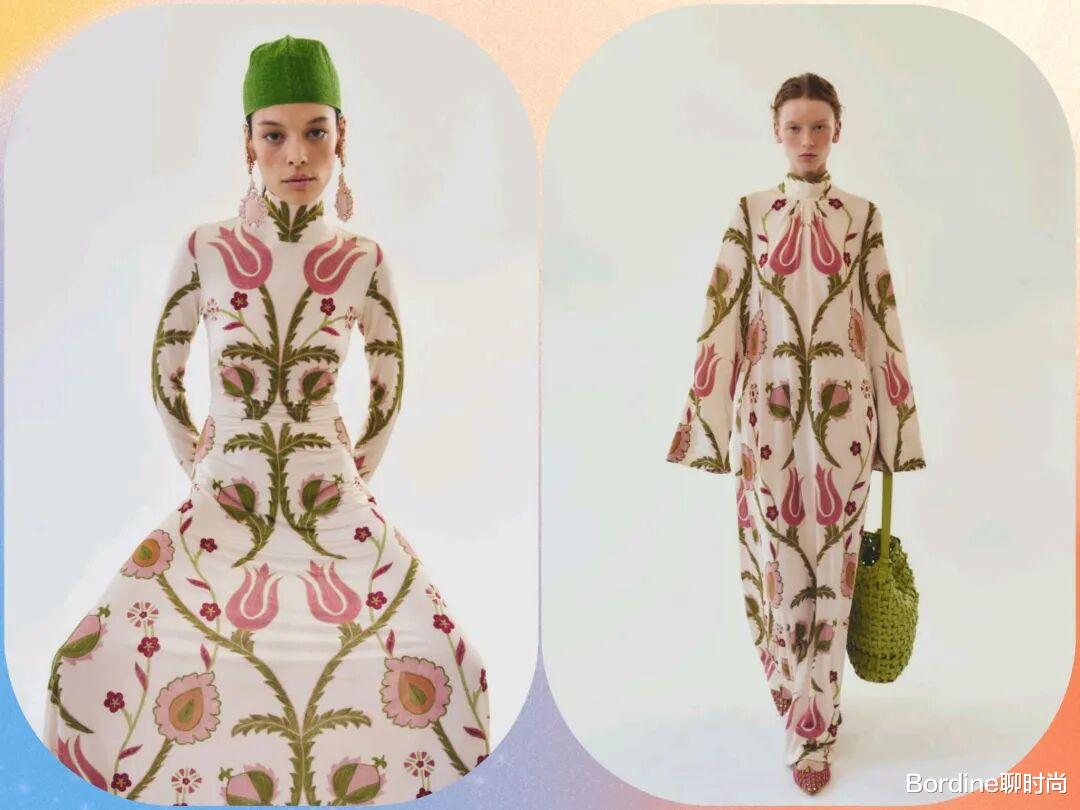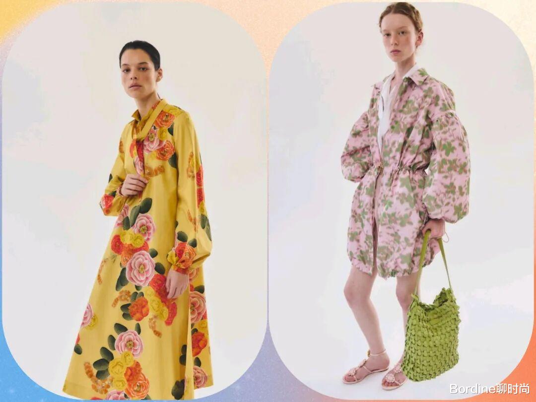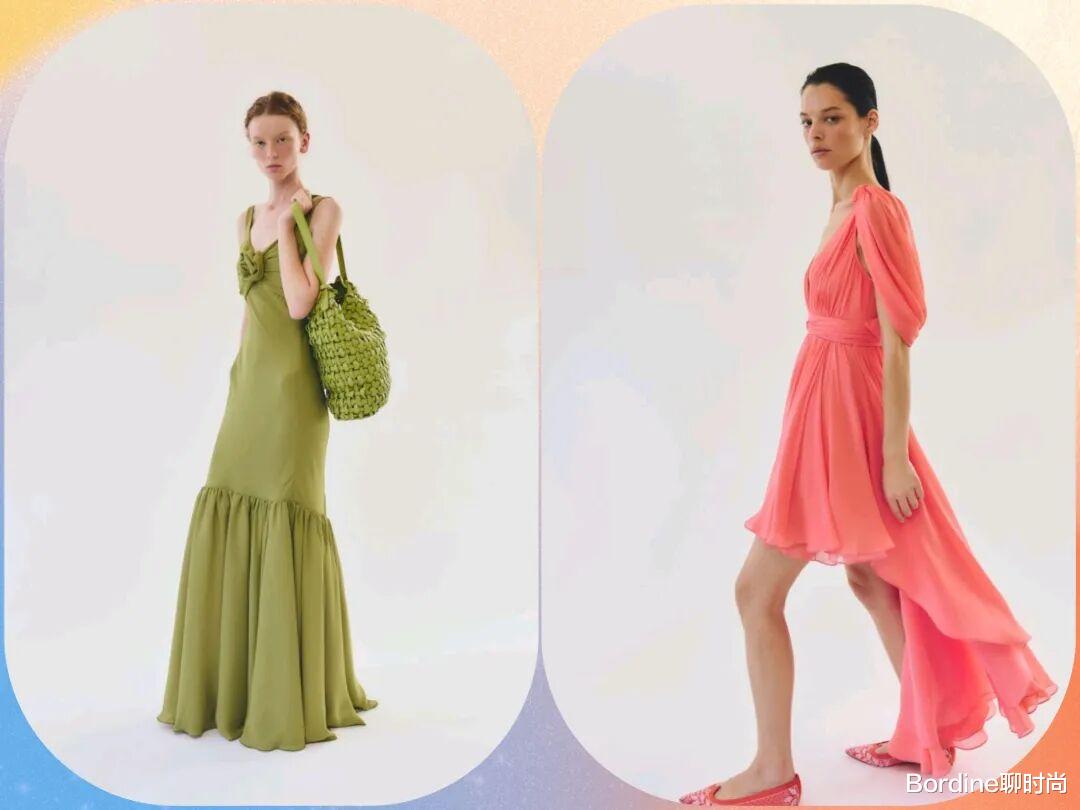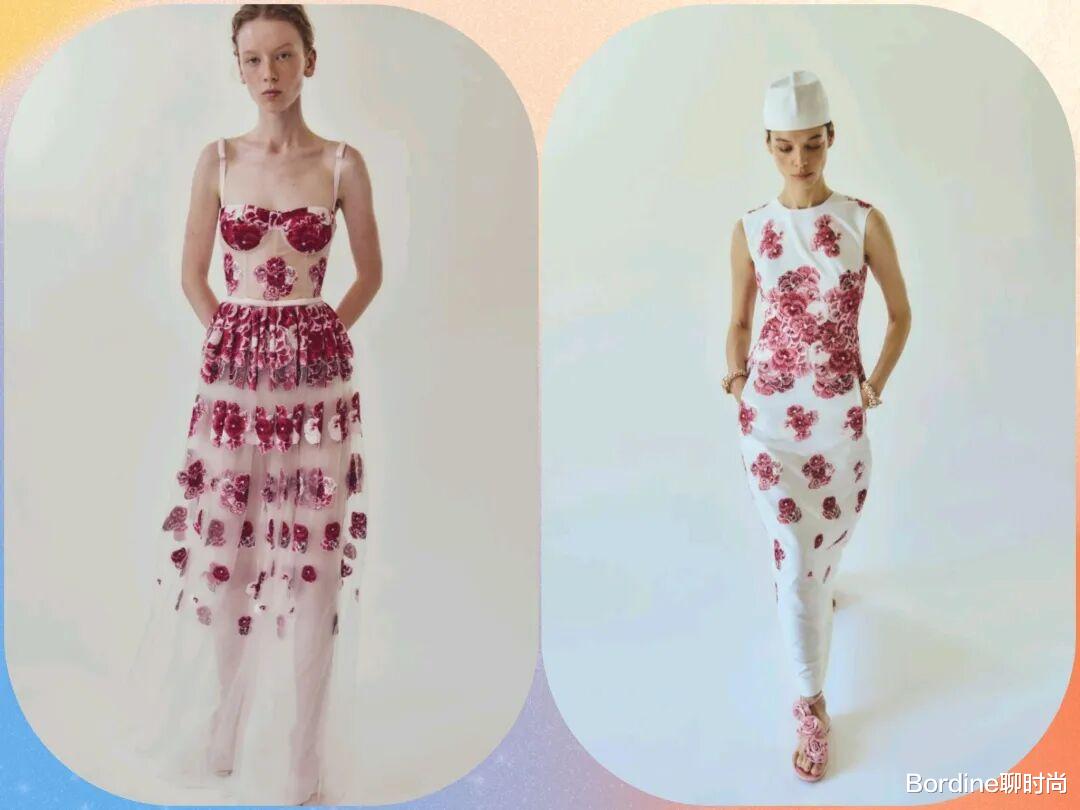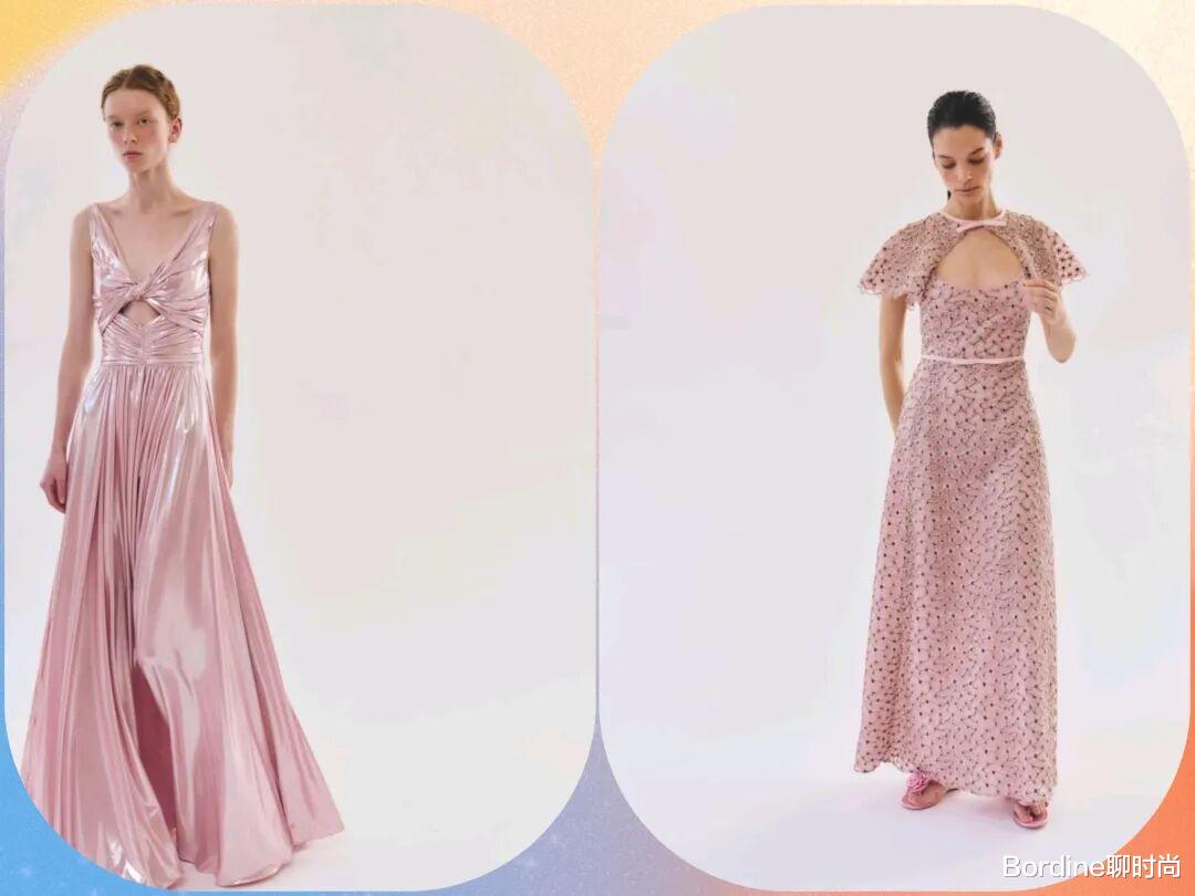 奢华的自然主义还有浪漫复兴,在玫瑰装饰,裙撑造型,廓形晚礼服等设计,在教皇红、冰激凌粉、清新苹果肉🍏绿色等颜色更添色彩潮范儿的浪漫时尚。