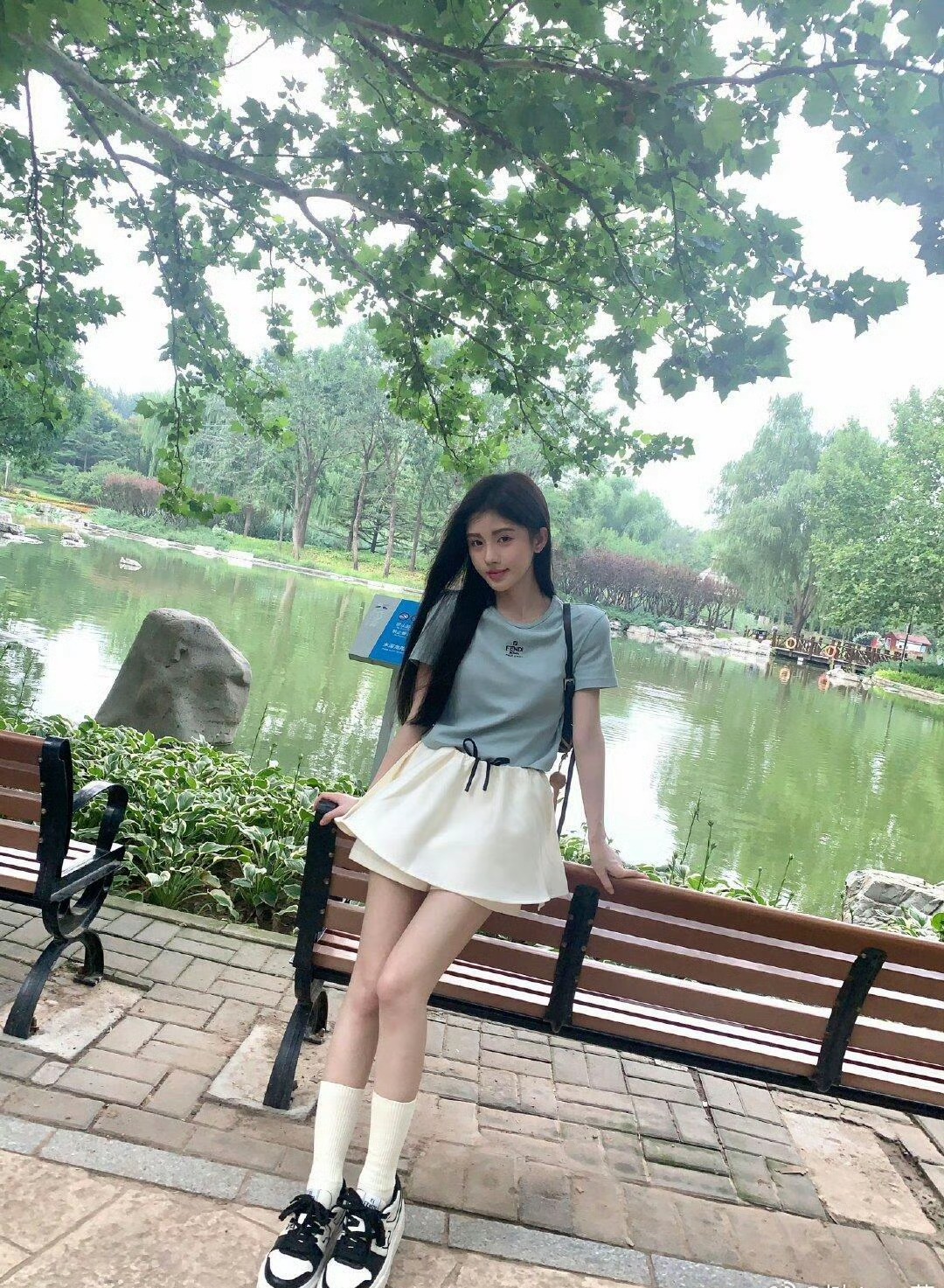 蓝色是夏天的颜色白色是青春的气息,鞠婧祎是把整个季节穿在身上