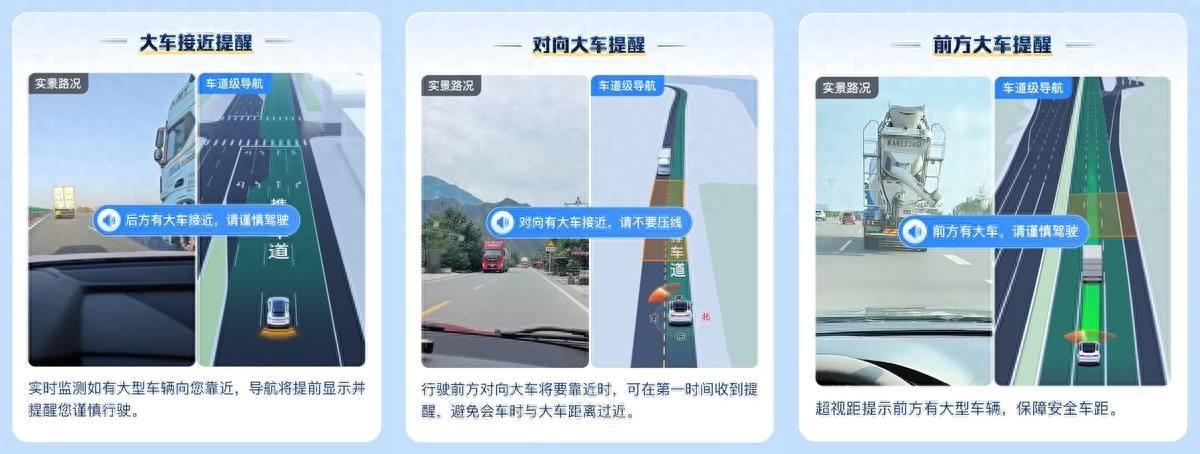 长期以来,大型车辆受载重大、视野死角多、刹车距离长等因素影响,成为令万千车主头痛的行车安全隐患。据中国司法大数据研究院统计,货车交通肇事率为32.04%。货车虽然占全部机动车保有量的10%,但导致一次死亡3人以上事故约占30%以上。据悉,百度地图本次发布的车道级动态安全预警,提出了全新解决方案。“百度地图为您探测到前方有大车,请谨慎驾驶。”每当前方出现大车时,车主就会收到这样的提醒。无论是对向有大车,还是后方有大车靠近,百度地图车道级动态安全预警产品都会实时预警,守护车主行车安全。