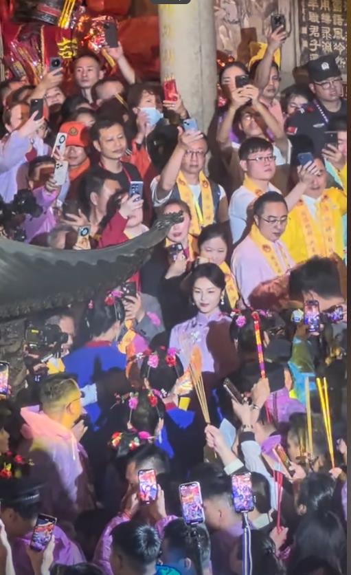 头戴凤钗,身穿霞帔,衣服的颜色依然是淡粉色,很衬她的皮肤,简直是妈祖下凡一样,不得不说,这个状态和身姿确实担得起福建人的厚爱。