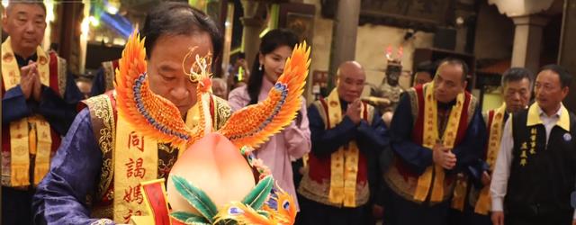 只见她面带微笑,将寿桃递给妈祖庙董事长林先生之后,就退到一边,跟着众人一起向妈祖行礼。