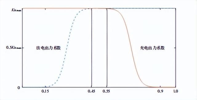 策略,但其控制策略简单且储能出力系数变化曲线为一次线性函数,其控制策略自适应程度低,调频效果不佳。本文将出力系数变化曲线视Logistic曲线,如图3所示。储能充放电系数采取分段函数,分别可以表示为: