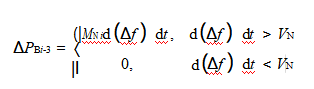 式中,ΔPBi-2为第i组储能单元虚拟正惯性出力功率值;MPi为该储能单元虚拟正惯性出力系数;d(Δf)∕dt为系统频率变化率;VP为虚拟正惯性频率变化率死区。