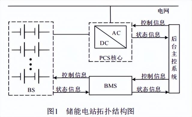 储能电站主要由储能电池组(Batterystorage,BS)、能量转换系统(Powerconversionsystem,PCS)、电池管理系统(Batterymanagementsystem,BMS)和后台控制中心(Supervisorycontrolanddataacquisition,SCADA)等组成。储能电池组主要由数量众多的储能单元并联构成,储能电站拓扑如图1所示。