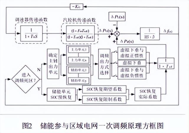 在非调频阶段,依据超短期负荷预测计算储能单元SOC恢复期望系数,考虑电网承受负荷波动的能力计算限制系数,优先对调频主力单元的SOC进行预恢复处理。储能电站参与电网一次调频的原理方框图如图2所示。