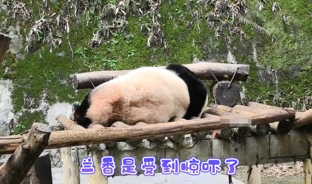 就当大家正在安安静静的欣赏熊猫兰香的时候,一位游客正好录下了接下来发生的一切,正在好好吃饭的兰香突然被吓的一激灵。