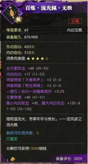 这位玩家来自网易旗下《逆水寒》的黄金服,仅花费了 1111 元购置了一个看似普通的游戏账号。然而,命运的惊喜总是在不经意间降临,账号中竟藏着一个顶级攻击向的百炼玉佩,其数值高达 3029 分。