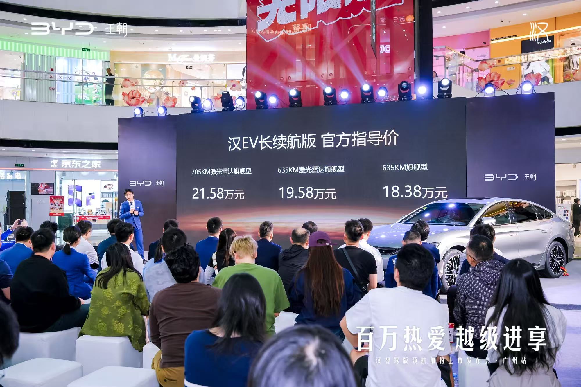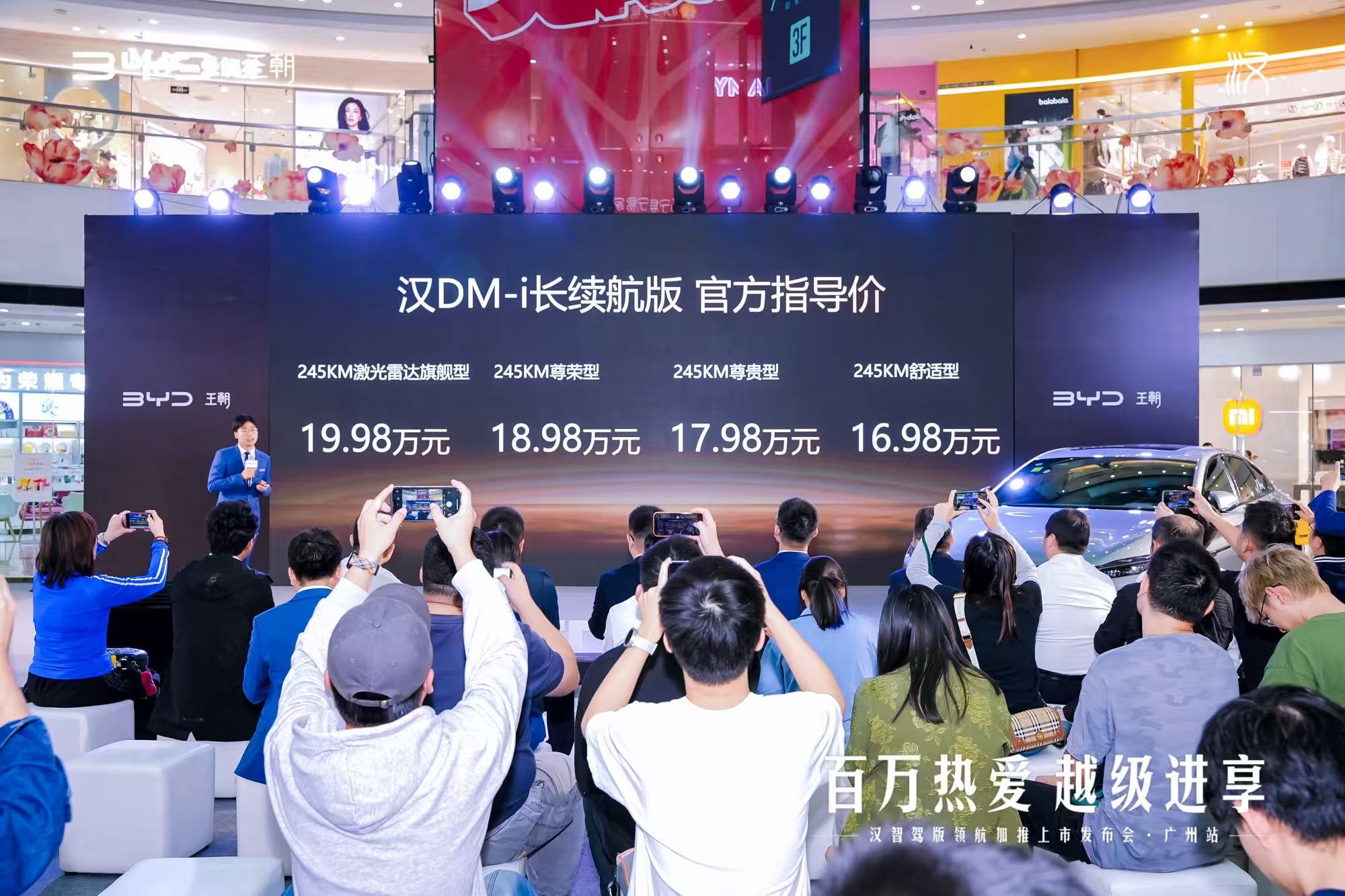 10 月 24 号,比亚迪王朝网在广州白云万达广场搞了场汉智驾版加推车型上市,主题叫 “百万热爱・越级进享”。