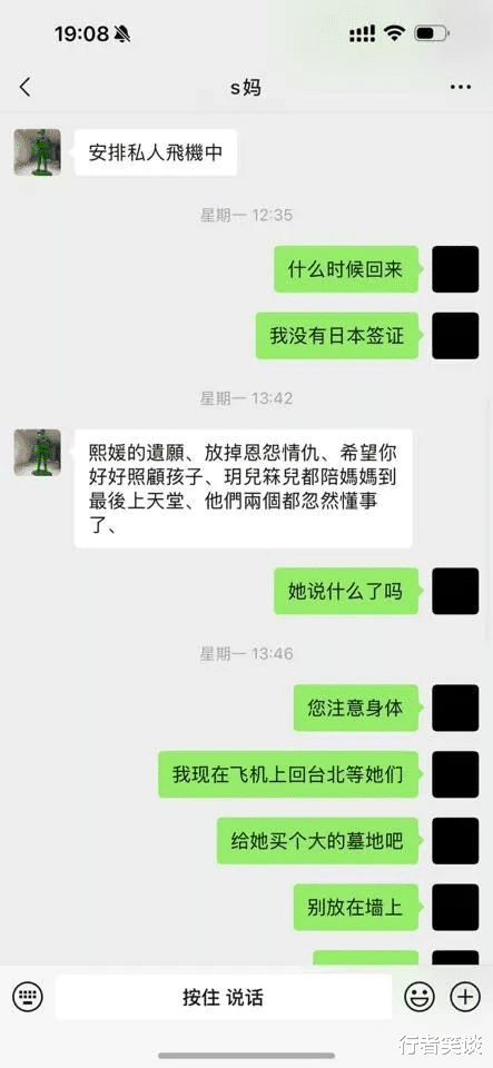 当然,S妈在聊天中也透露了大S的遗愿:放下恩怨情仇,好好照顾孩子。可讽刺的是,S妈自己却完全没做到这点!早在大S刚去世时,台媒就爆料说汪小菲深夜对着S妈咆哮,还特地向S妈求证,称S妈证实汪小菲对自己"疯狂大骂"。