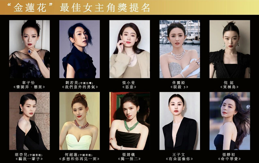 再比如提名最佳女主角的10位演员,章子怡是公认的国际影后,张小斐曾凭《你好,李焕英》拿过金鸡影后,佟丽娅、倪妮等演员也都是顶级实力派。