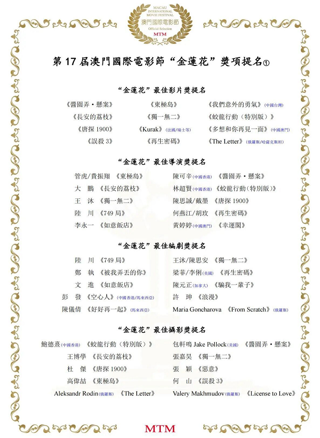 而接下来最受瞩目的,莫过于第17届澳门国际电影节金莲花奖。