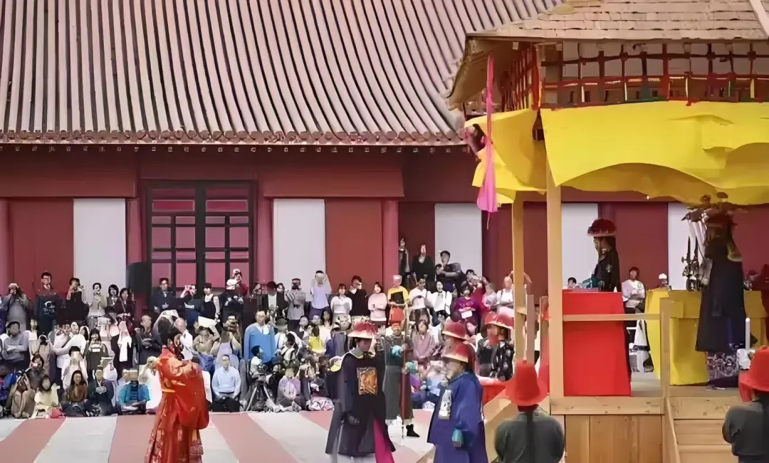 2023年,日本冲绳县那霸市街头,一群穿着清朝官服的人抬着轿辇缓步前行。轿中端坐着一位头戴红缨朝冠、身披刺绣蟒袍的“国王”,街道两旁挤满游客,有人举着手机惊叹:“这是拍古装剧吗?”