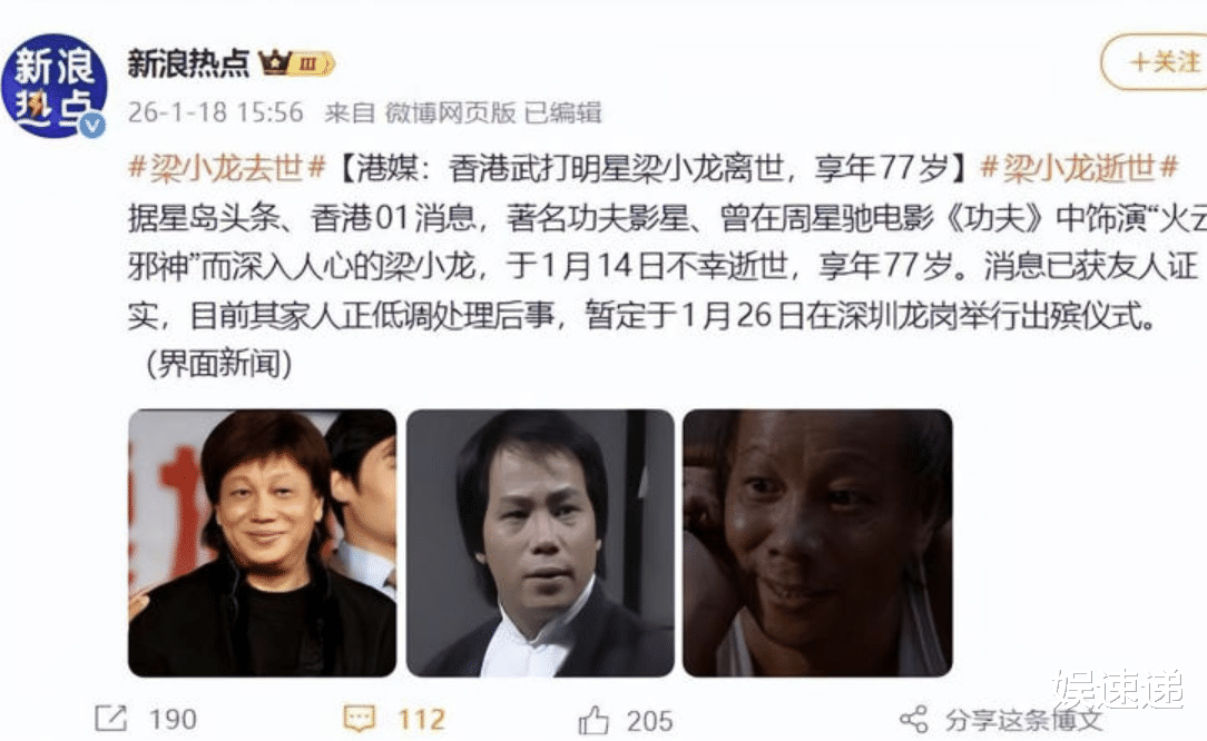 即便火云邪神的戏份占比很小,梁小龙的去世消息依然让粉丝心情低落!