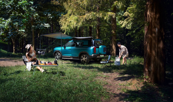 舒适与便利则体现在那些“刚好有”的细节里。1.05平方米的全景天窗让车内明亮通透,白天看云,夜晚观星,氛围感自然拉满;220V电源接口(150W)虽功率有限,但为相机、无人机或小电锅供电已绰绰有余;电动感应尾门也让双手拎满物资时开合更轻松。更意外的是,它还配备了10扬声器HiFi音响、64色氛围灯,甚至内置雷石KTV——停在湖边或服务区,车厢秒变移动休闲室,旅途不再枯燥。