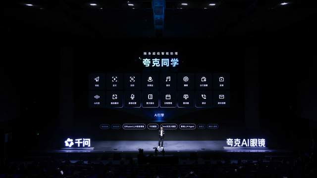 硬件层面,夸克AI眼镜S1搭载双旗舰芯片,采用双光机双目显示,国内首创合像距可调,亮度可达4000nits,保证户外环境下显示清晰可见。产品配有五个麦克风阵列加骨传导,能够更精准地拾取人声、过滤环境噪音,让用户在地铁、街头等嘈杂场景下也能自然地与千问对话。