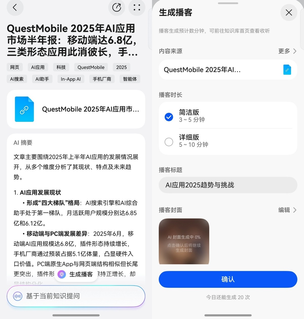 都市“隶”人最宝贵的碎片时间,莫过于每天通勤的两小时。以前不是刷短视频就是追短剧,现在小艺能把枯燥的市场研究报告变成互动式播客。遇到不太清楚的地方,我还能随时打断提问。地铁呼啸而过,而我在短暂的时间里开完了一场颅内行业研讨会。