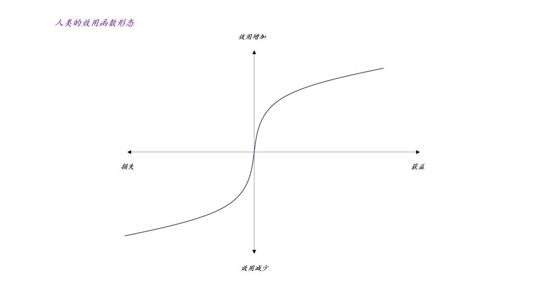上图浓缩了人们对财富的矛盾看法,当人们获益时,人们是风险厌恶的;对称的,当人们受损时,人们是风险偏好的。