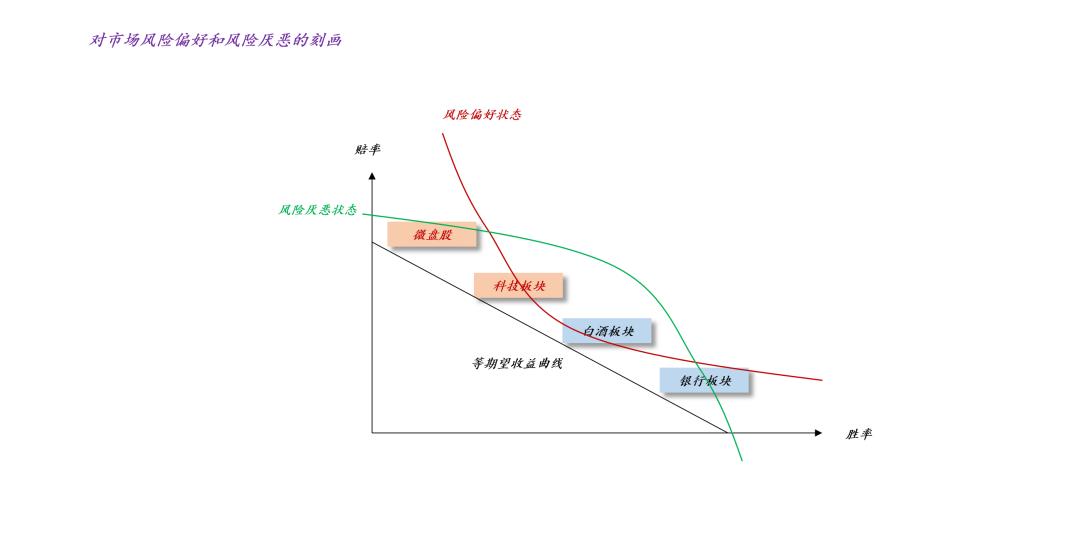 市场在不同的状态下对等期望收益曲线有不同的看法。有些时候,市场总体是风险偏好的;有些时候,市场总体是风险厌恶的。